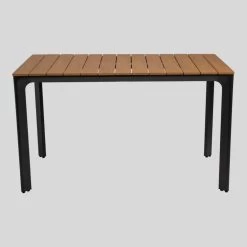 Arezzo terrastafel is verkrijgbaar in verschillende formaten waardoor er gemakkelijk één variant bij jouw wensen past! Deze terrastafel heeft een afmeting van 130×70 cm. De tafel is daarmee geschikt voor de kleinere tuin of ruim balkon. Arezzo heeft een onderstel dat bestaat uit vier donkergrijze aluminium poten. Het tafelblad is uitgevoerd in polywood met een natuurlijke teakhouten look, waardoor deze tafel een stijlvolle uitstraling krijgt. Combineer deze terrastafel ook met de bijpassende terrasstoelen en maak de set compleet. Polywood is een 100% kunstmatig alternatief voor hout. Dit materiaal kan net als hout gaan werken, waardoor onregelmatigheden in het blad niet te voorkomen zijn.