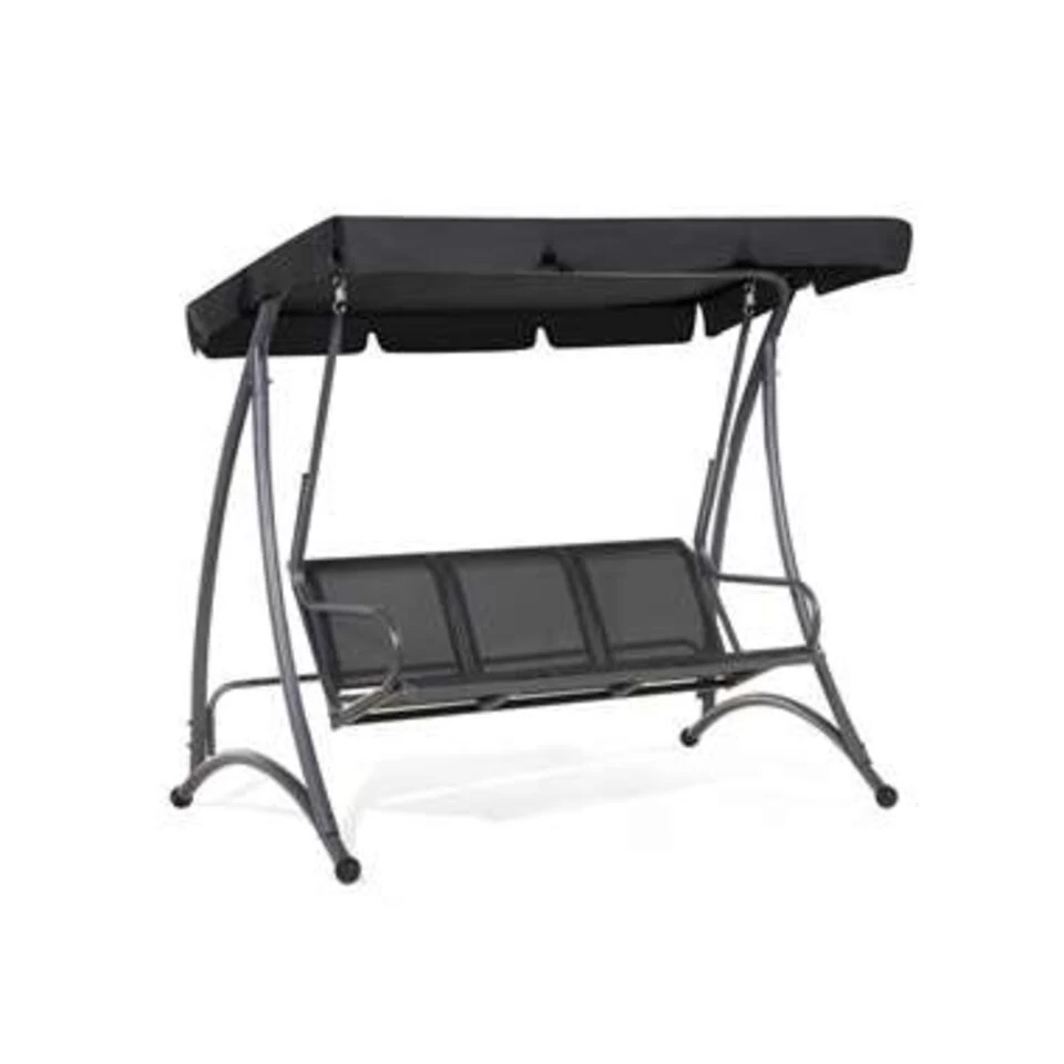 Romantische veranda schommelbank. Een heerlijke schommelbank is een geweldige aanvulling op jouw buitenruimte. Gemaakt met zorg en precisie van gepoedercoat staal en synthetische stof, waardoor de constructie bestand is tegen verschillende weersomstandigheden. De brede en comfortabele bank beschermt je tegen zonnestralen en laat je genieten van een ontspannen, zonnige dag.