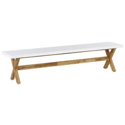 Moderne tuinbank van vezelcement en acaciahout. Geniet van zomeravonden voor twee of geniet van een barbecue-avond – deze bank kan snel worden geplaatst waar u maar wilt. Gemaakt van onderhoudsvriendelijk, weer- en weerbestendig vezelcement met een stabiele basis van duurzaam acaciahout, de zitting is duurzaam en gaat jarenlang mee, zelfs met minimaal onderhoud.