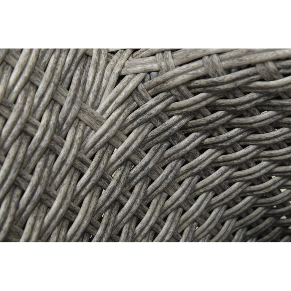 De vier Jerba tuinstoelen zijn gemaakt van een stevig aluminium binnen frame met daaromheen 7mm wicker vlechtwerkdraad in de kleur organic grey. Dit wicker is gemaakt van stevig kunststof waardoor de stoel zeer duurzaam is.