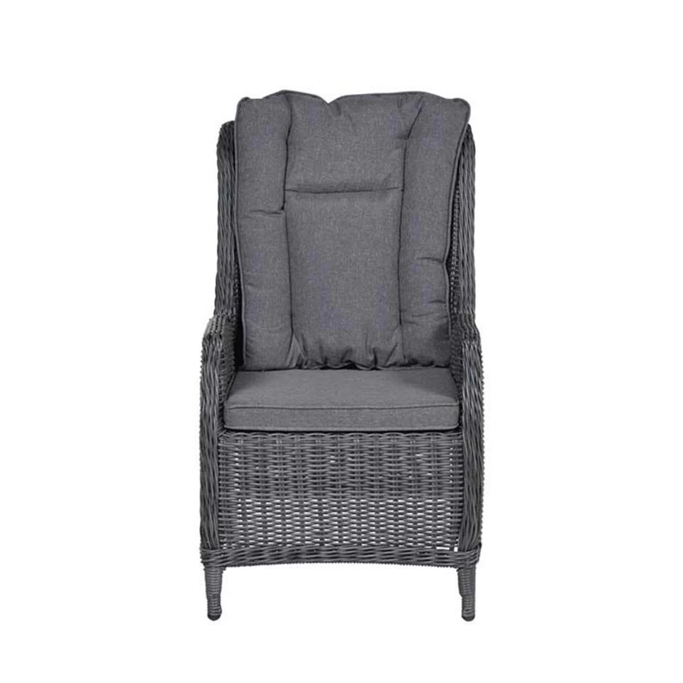 De Marbella verstelbare tuinstoel is een zeer ruime lounge stoel van kwaliteitsmerk Garden Impressions en zit werkelijk heerlijk. Of je nu lekker een boek wilt lezen, lekker wilt genieten van de zon of wilt dineren, deze stoel is er zeker geschikt voor. De Marbella tuinstoel is verstelbaar en al jaren een absolute verkooptopper uit onze collectie. Dat komt vooral door de stijlvolle vormgeving en het geweldige zitcomfort. Kijk bijvoorbeeld eens naar de mooie rondingen boven aan de rugleuning en de sierlijke lijnen bij de armleuningen. De Marbella verstelbare tuinstoel is vervaardigd uit een onderhoudsvrij aluminium frame en weerbestendig half rond wicker kunststof vlechtwerkdraad in de kleur earl grey. Het draad heeft een dikte van maar liefst 6,5mm, wat zorgt voor een robuuste uitstraling. Wicker is een stevig en duurzaam kunststof, waardoor je jarenlang kunt genieten van de Marbella stoel. Deze tuinstoel wordt bovendien geleverd inclusief een polyester zit- en rugkussen. Het zitkussen is voorzien van een rits, waardoor het hoesje gemakkelijk met de hand gewassen kan worden. Het rugkussen is voorzien van extra stiksels om een extra mooie chique vorm te geven aan het kussen. Na gebruik kunnen de kussens opgeborgen worden in de schuur of een mooie kussenbox. De Marbella verstelbare tuinstoel is daarnaast voorzien van een gasveer waarmee de rugleuning in iedere gewenste stand naar achteren geplaatst kan worden. Deze verstelbare wicker tuinstoel is voorzien van een gasveer van een hoogwaardige kwaliteit. Voor behoud van de gasveer is er gebruik gemaakt van een koker met kunststof sluitingsranden om de gasveer. Dit voorkomt dat er zomaar vocht bij de gasveer kan komen. Uiteraard kan door de jaren heen er wel wat vocht bij komen. Om dit zoveel mogelijk te beperking wordt er aangeraden om de stoelen bij nat of vochtig weer af te dekken met een passende beschermhoes. Uiteraard kan de Marbella stoel los aangeschaft worden, maar er zijn meer meubels in de Marbella serie. Zo is er nog een heerlijke Marbella 3-zits bank en de ruime Marbella tuintafel van 180cm. Al deze artikelen zijn leverbaar in verschillende kleurstellingen. Daarnaast zie je steeds vaker dat wicker tuinstoelen worden gecombineerd met bijvoorbeeld een mooie teakhouten of granieten tuintafel. Kortom: maak je eigen unieke lounge combinatie. De afmetingen van deze stoel zijn: B 63 x D 80 x H 104,5 cm.