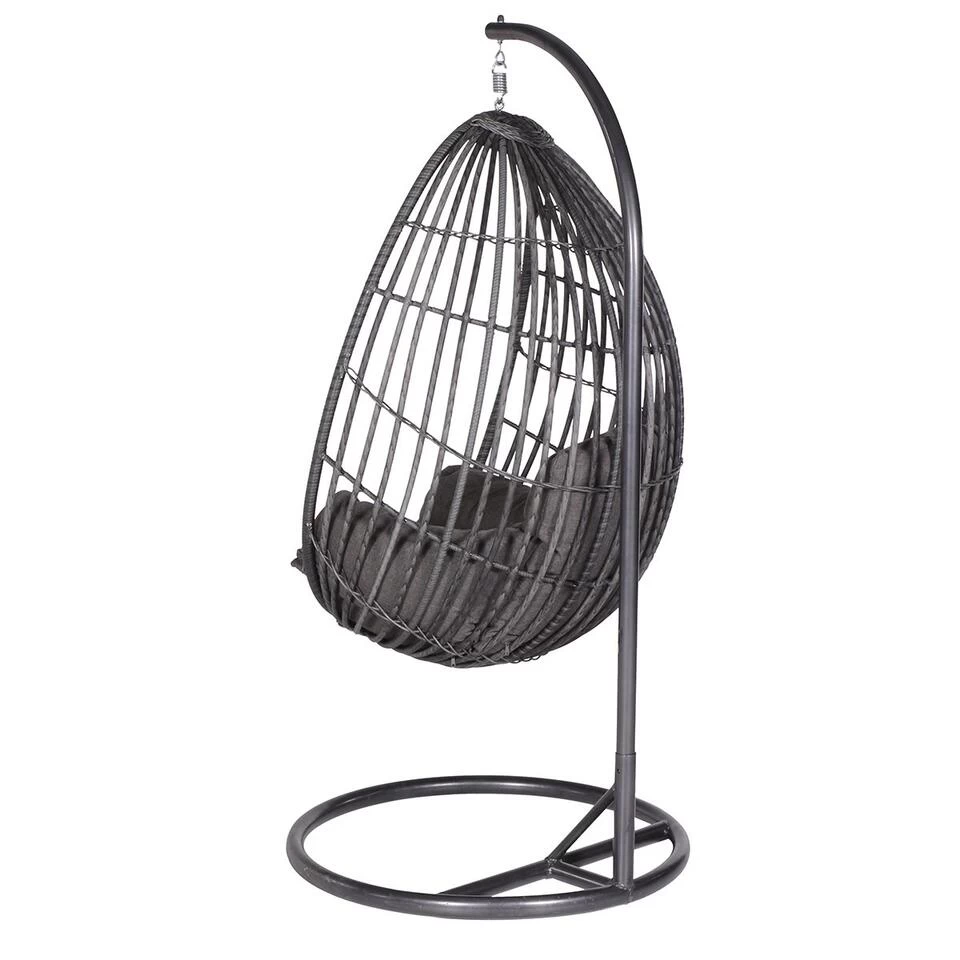 Het ei is gemaakt van aluminium met weerbestendig wicker. Het ei wordt bevestigd aan het meegeleverde stevig stalen frame voor voldoende stabiliteit. Kies ook voor design in je tuin en relax heerlijk in deze opvallende hangstoel. Ook geschikt voor binnenshuis als opvallende blikvanger!