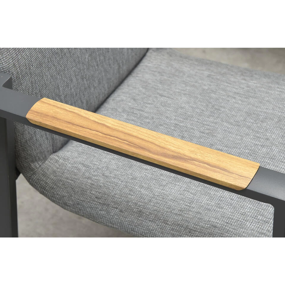 De Ron dining stoel is een fijne lichtgewicht tuinstoel en heeft een rechte rugleuning. De Ron is vervaardigd uit grijs aluminium, maar heeft teaklook details! Dit geeft de tuinstoel een chique uitstraling en is net even anders, dan anders. De tuinstoel wordt standaard geleverd met een fijn zitkussen.