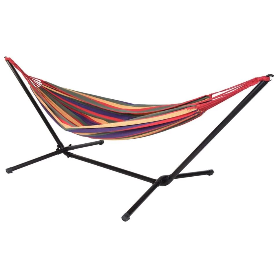 De hangmat is voorzien van een metalen frame, waardoor hij stevig en stabiel op de grond staat. Het kleurrijke bed is comfortabel, zacht om in te liggen en brengt het echte vakantiegevoel naar boven. Geniet van het mooie weer in deze hangmat, in je tuin of op het strand!