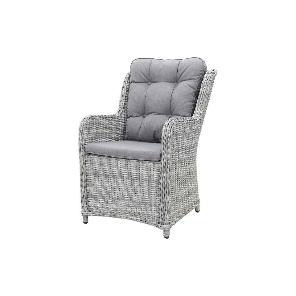 Comfortabele tuinstoel met een luxueuze uitstraling. De Richmond van het merk Suns is een super stevige tuinstoel welke perfect gecombineerd kan worden bij diverse tuintafels. De tuinstoel heeft een iets achterover hellende rugleuning wat ervoor zorgt dat je extra comfortabel zit. De Richmond heeft rond wicker in de kleur Pearl Grey.