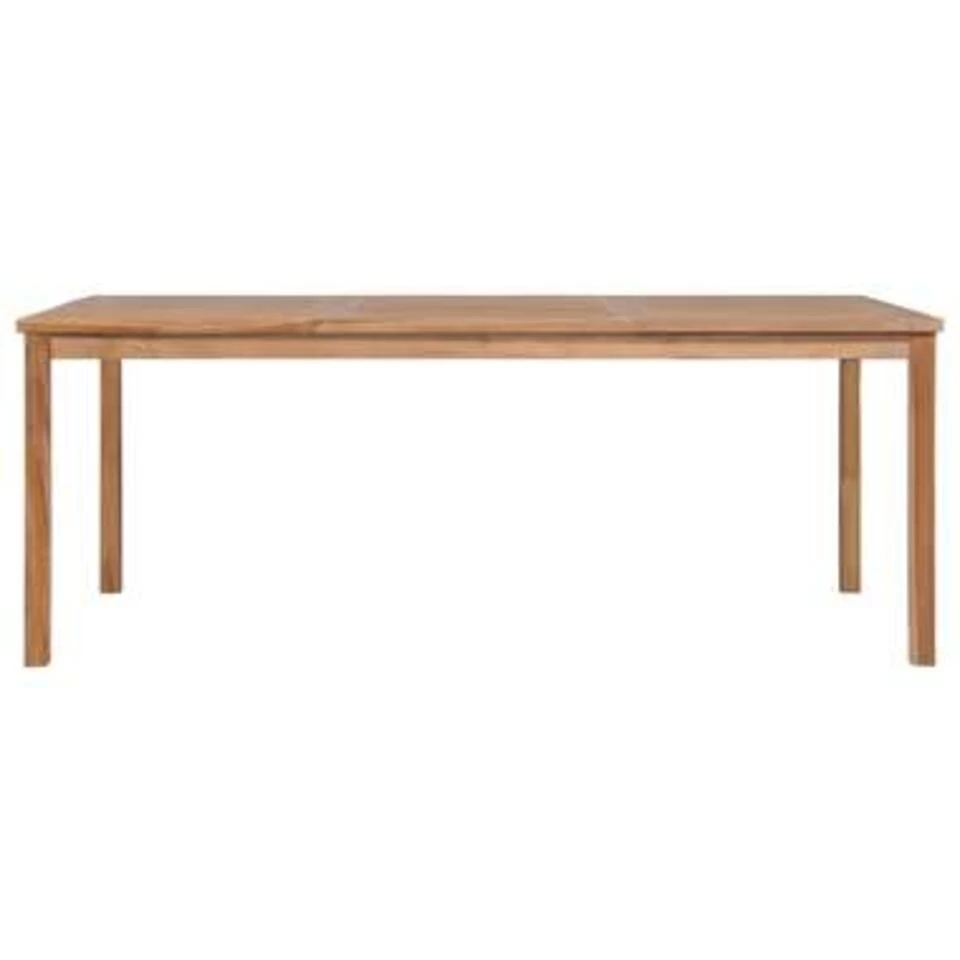 Deze massief houten eettafel heeft een afwerking op waterbasis en voegt een vleugje natuurlijke charme toe aan je keuken, tuin of patio.