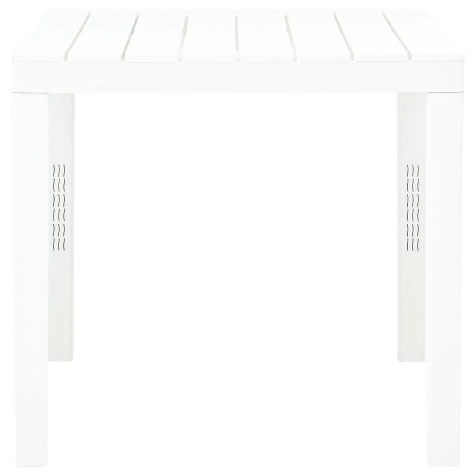 De tafel is gemaakt van duurzaam kunststof waardoor hij weerbestendig en gemakkelijk schoon te maken is. Het tafelblad met gelat ontwerp voegt extra elegantie toe. Daarnaast is hij lichtgewicht zodat je hem eenvoudig kunt verplaatsen.